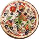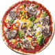 Bacon, Pepperoni, Ham, Meatball, Sausage, Tomato, Onion, Mushroom, Green Pepper, Black Olive, On a perfect crust